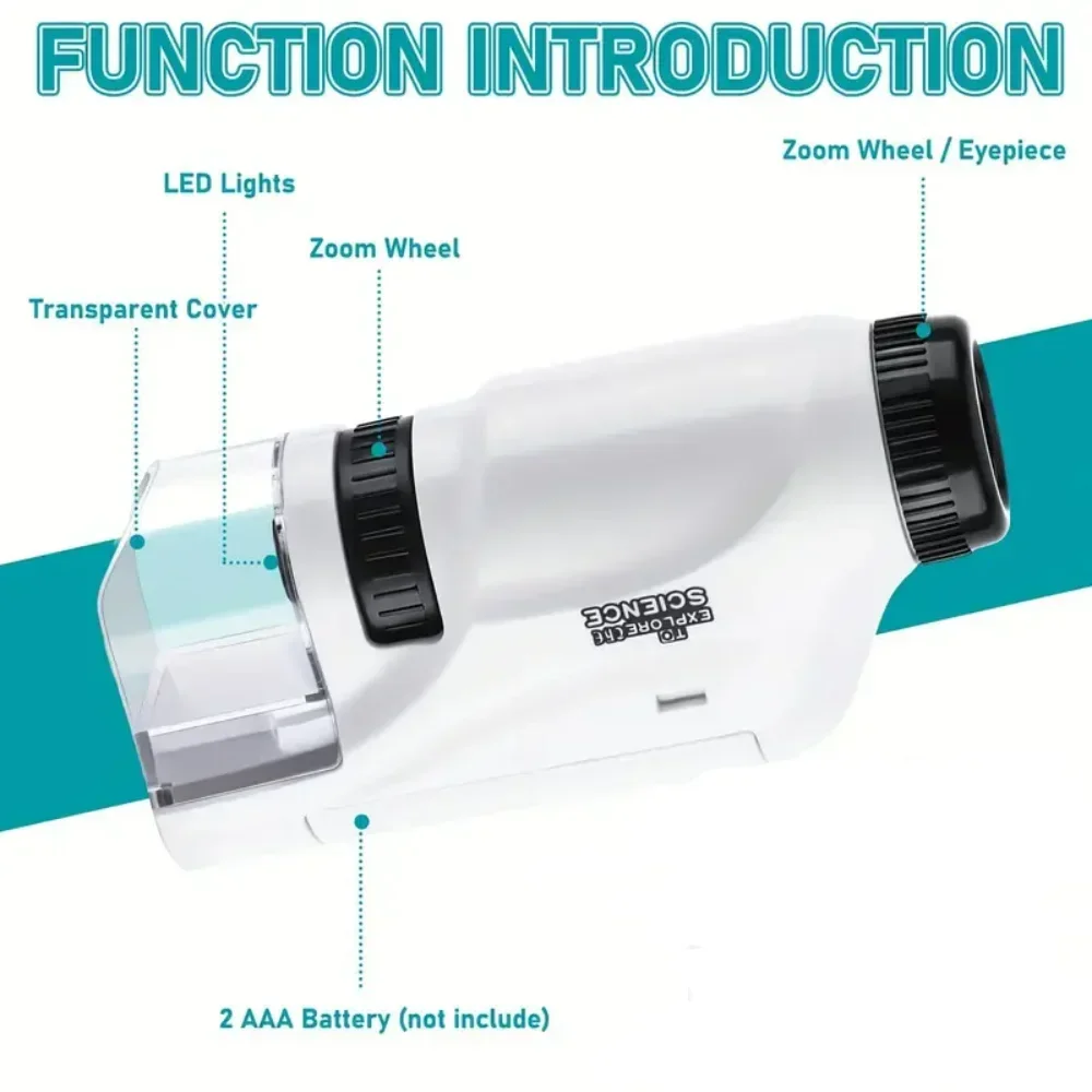 Seu pequeno cientista está pronto para uma grande descoberta? Com o Microscópio de Mão Portátil Infantil, a ciência se torna uma aventura empolgante! 👀✨